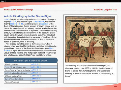 - In-text links to official, online versions of Scripture, the Catechism, and Church documents so that students can study quotes from the text in their original context.