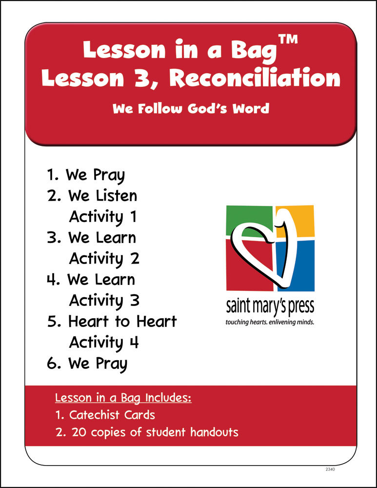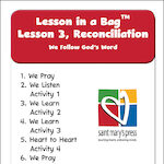 Lesson 3, Reconciliation introduces children to the Scripture story about the Ten Commandments. Children will understand that we can learn God’s rules from the Bible, and that Jesus came to show us how to follow God’s rules. They will also understand the difference between mortal and venial sin. In this lesson children will also learn that by keeping God’s commandment of love we keep all Ten Commandments.