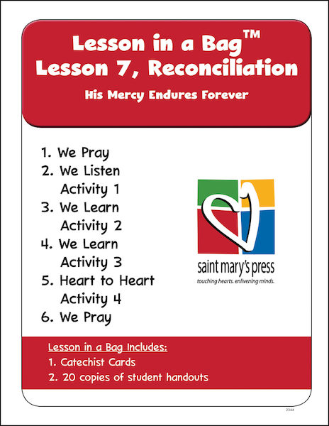 Lesson 7, Reconciliation introduces children to the Scripture story about the lost sheep and the good shepherd. Children will understand that Jesus loves us even when we sin and rejoices when we come back to him. They will review the gifts we receive in the Sacrament of Reconciliation and understand that Jesus will be our Shepherd and will never stop loving us.