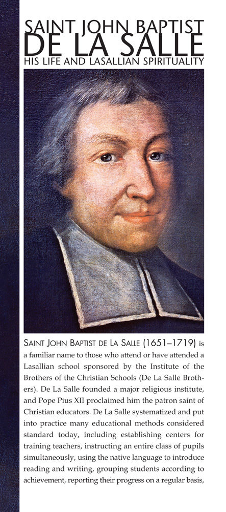Saint John Baptist de La Salle (1651-1719) is a familiar name to those who attend or have attended a Lasallian school sponsored by the Institute of the Brothers of the Christian Schools (De La Salle Brothers). De La Salle founded a major religious institute, and Pope Pius XII claimed him the patron saint of Christian educators. This 12-page pamphlet includes the history of de La Salle, quotes from his Meditations, and descriptions of Lasallian spirituality and the Lasallian way.