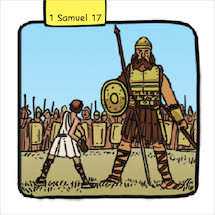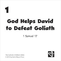 The David and Goliath Tell It! Cards highlight key people and events from the well-loved story in The Catholic Children’s Bible.