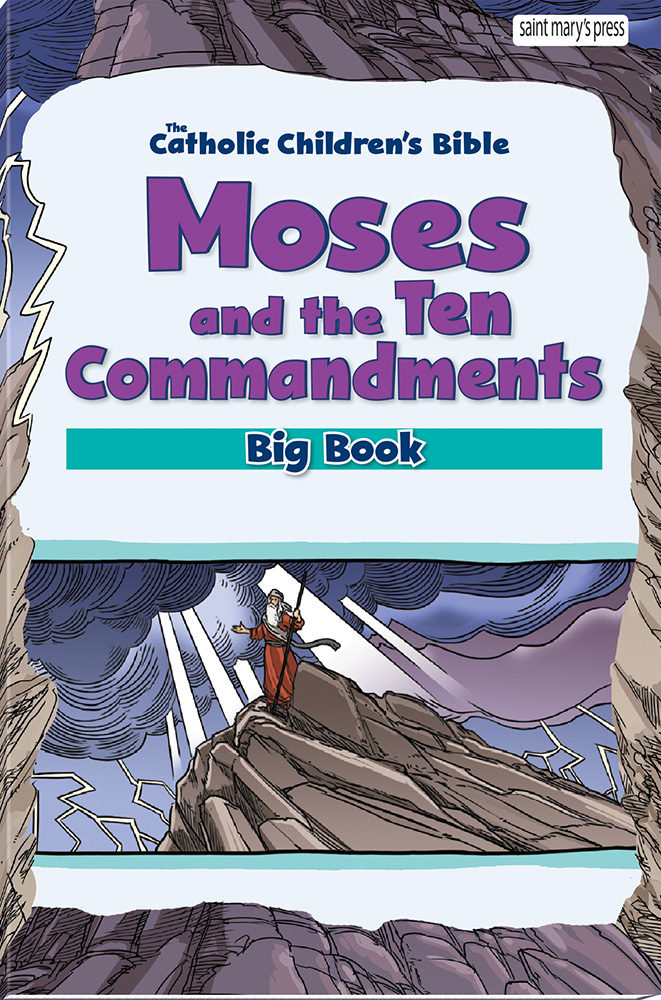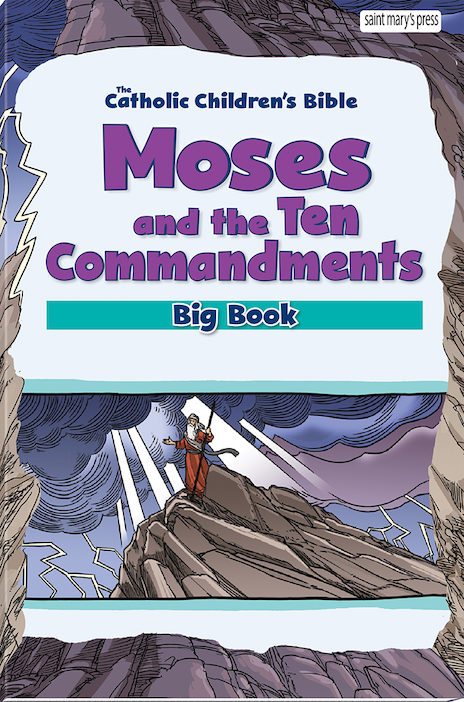 When The Catholic Children’s Bible Big Book on Moses and the Ten Commandments arrived as a review copy from Saint Mary’s Press, I thought the publisher might be sending me a poster about one of their many fine publications. Instead, I found an actual Bible storybook, measuring 14” x 21” with large print and illustrations a group of children can easily see as someone holds up the book.