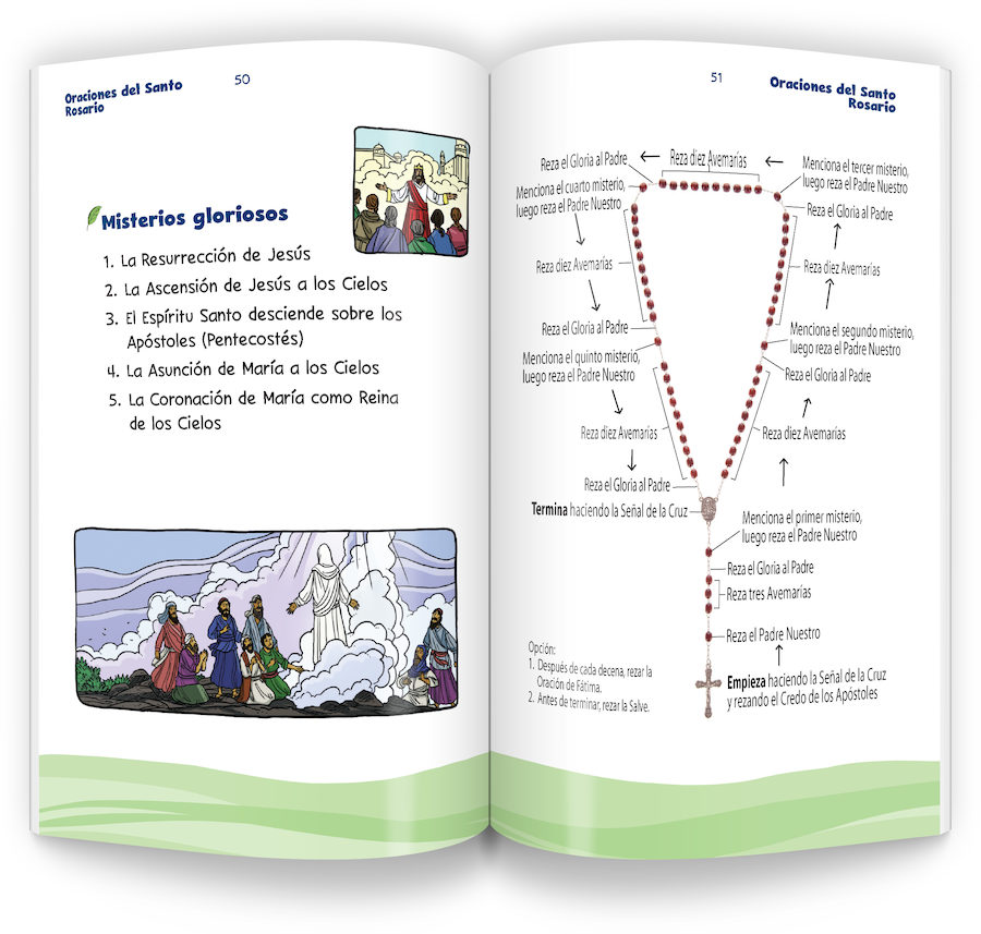 This Spanish prayer book features all of the Mass Prayers, Everyday Prayers, Rosary Prayers, as well as an informative guide on how to pray, all translated beautifully.