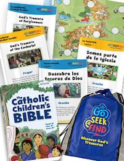 Go Seek Find: English Catholic Children's Bible + Spanish & English Activity Booklets