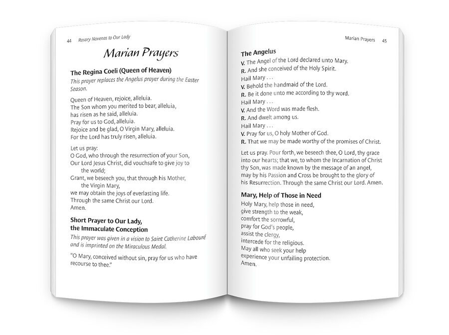 This new edition preserves the power and charm of the original devotion, maintaining the cadence, structure, and basic prayers of the novenas. It also includes a new guide to praying the Rosary and a new section of Marian prayers and feast days. Our hope is that these additional resources will be helpful as you continue honoring Our Lady and asking for her intercession throughout the year.