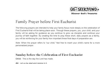 These prayers will help your family focus more deeply on the celebration of First Eucharist that will take place soon. Through these prayers, you, your child, and your family will ask for guidance as you continue to grow as disciples …