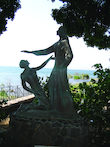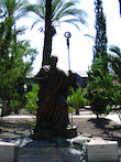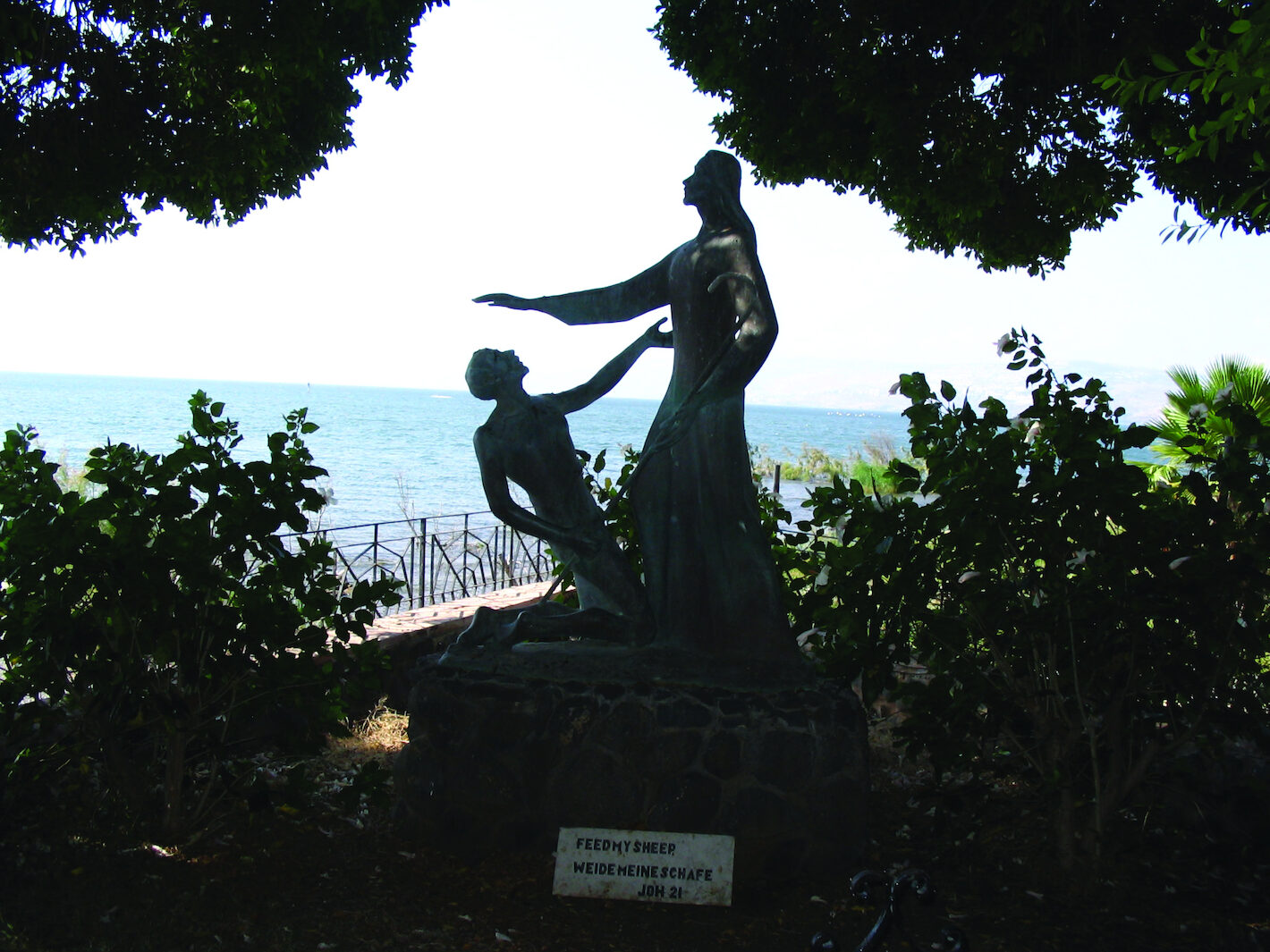 Church of the Primacy of Saint Peter on the Sea of Galilee in Tabgha, Israel. Traditional site where Jesus Christ appeared to his disciples after his resurrection and, according to Catholic tradition, established Peter's supreme jurisdiction over the Christian church. Comemorates Jesus' reinstatement of Peter as chief among the Apostles. This is a statue of Jesus telling Peter to "Feed my sheep."