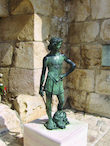 This is a statue of Mary greeting Elizabeth at the Church of the Visitation in Ein Karem in Israel.