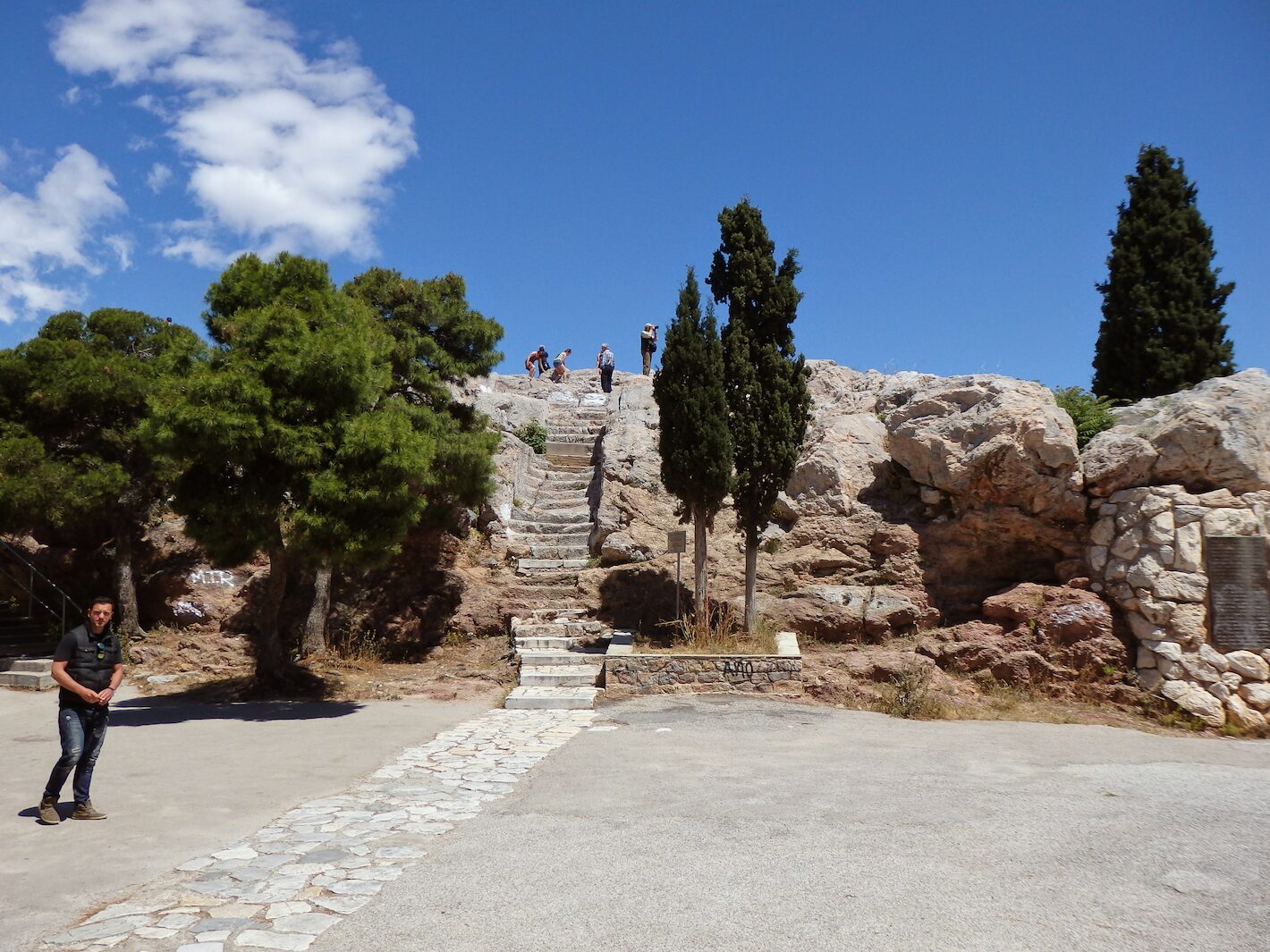 These are the steps to the top of the Areopagus, the hill dedicated to Ares, the god of war. The Book of Acts tells us that Saint Paul made his famous speech about the "unknown God" here (see Acts 17:16-34). Always the passionate evangelizer, Saint Paul uses elements from Greek culture in an attempt to win their hearts and minds. What cultural elements must we appeal to reach hearts and minds today?