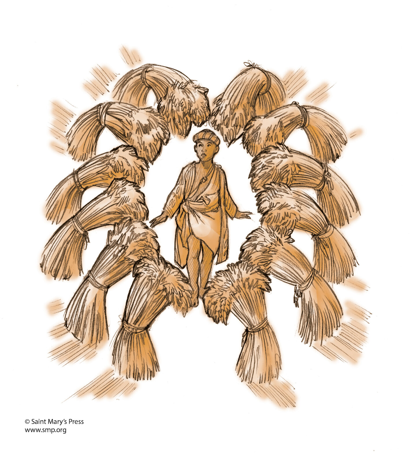 An illustration from The African American Catholic Youth Bible® of Genesis 37:7 – Joseph’s dream.