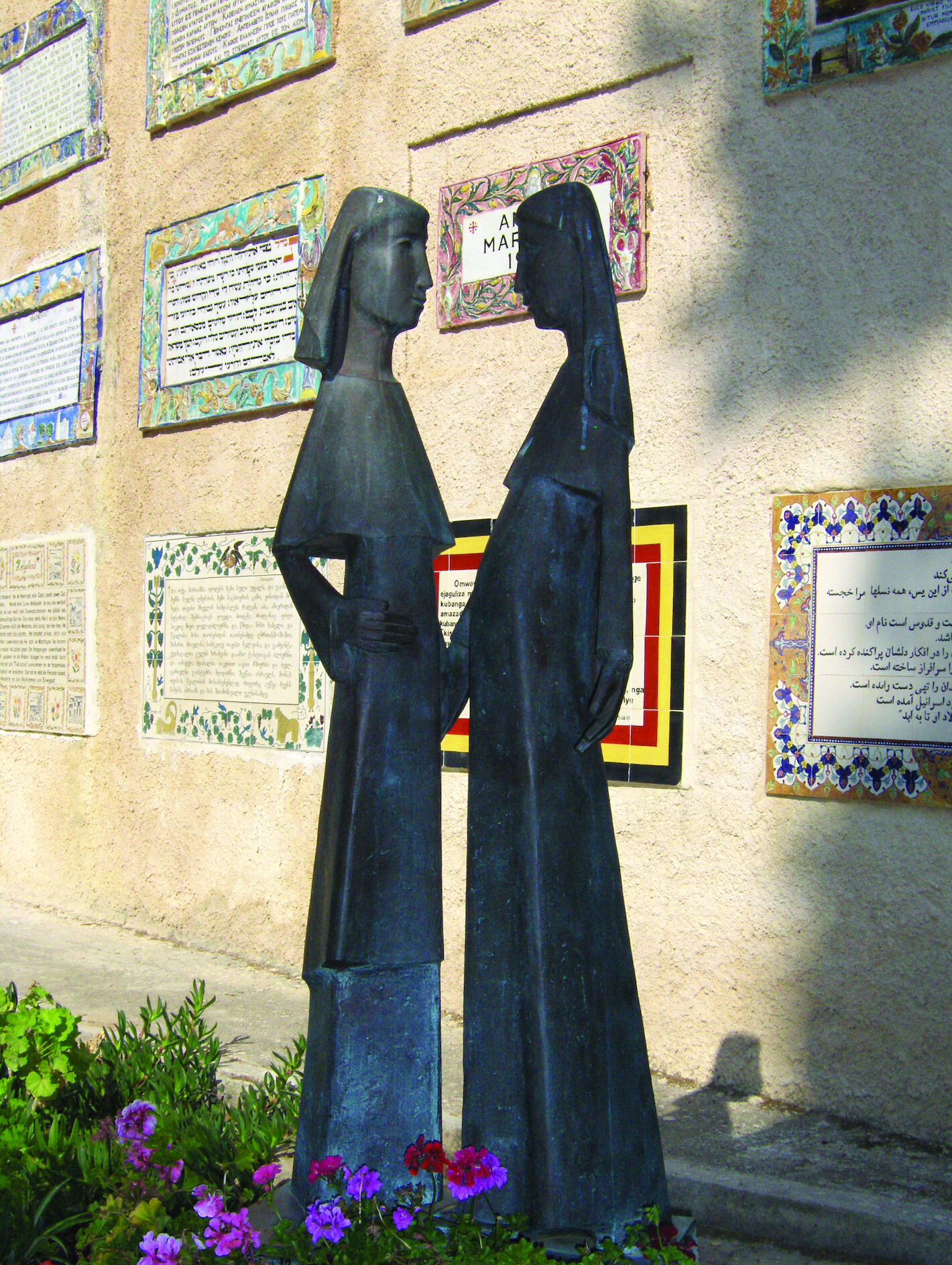 This is a sculpture of Mary and Elizabeth at the Church of the Visitation at Ein Kerem in Israel.