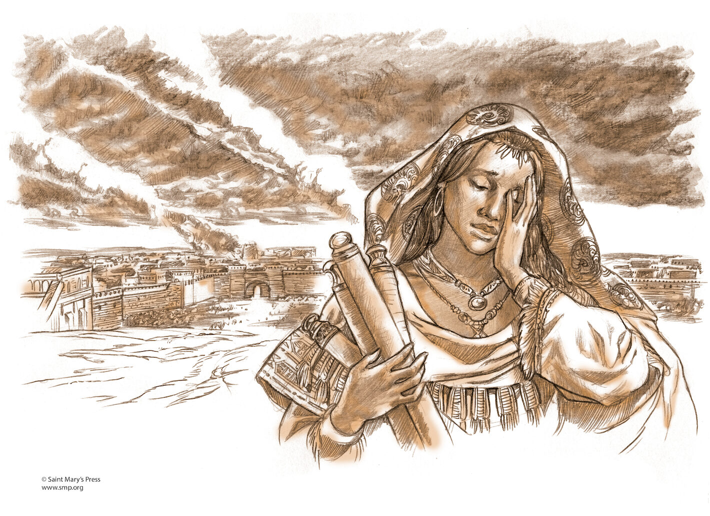 An illustration from The African American Catholic Youth Bible® of Lamentations 1:2 – the desolation of Jerusalem.