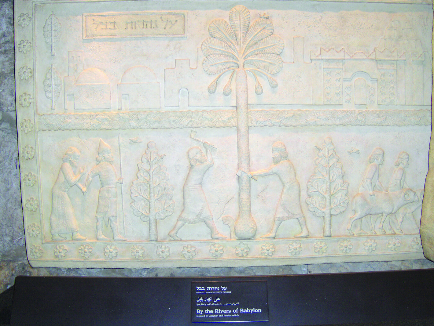 This is a photograph of an etching of the Babylonian captivity, which is a historical event chronicled in the Old Testament.