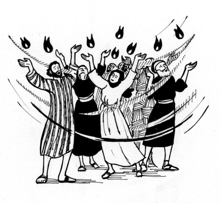 This is an illustration of Pentecost, when the Holy Spirit descended on Mary and the Apostles.