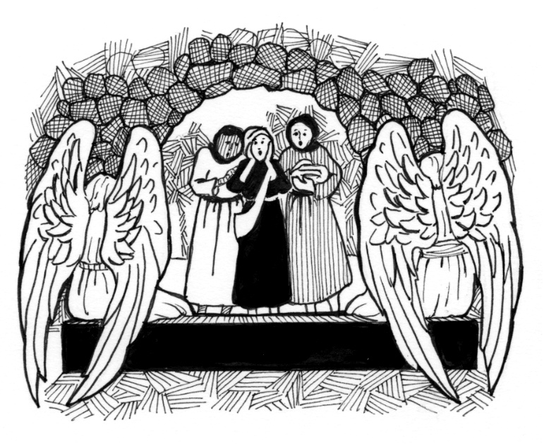 This is an illustration of the Resurrection of Jesus, when the women find the tomb empty.