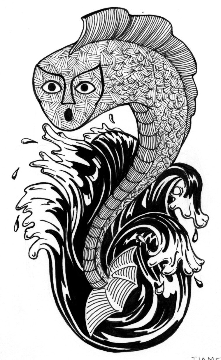 This is an illustration of Tiamet - an ancient creature from Babylonian mythology, who is considered the goddess of chaos.