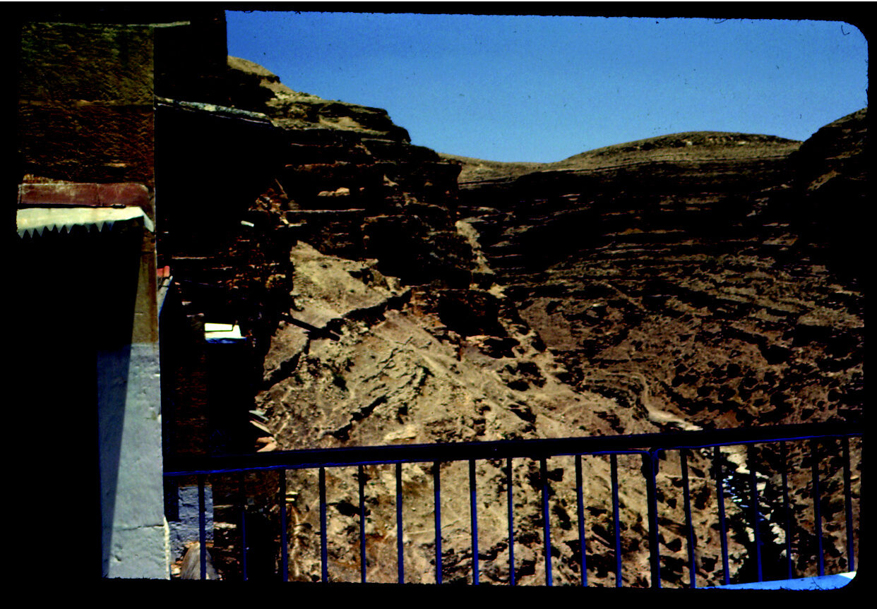 "The caves on this hillside are part of the Mar Saba Monastery in the wildernes of Judea. Founded in the fifth century by Saint Saba, it is one of the oldest monasteries in the Holy Land. Hermits still live in these caves today."