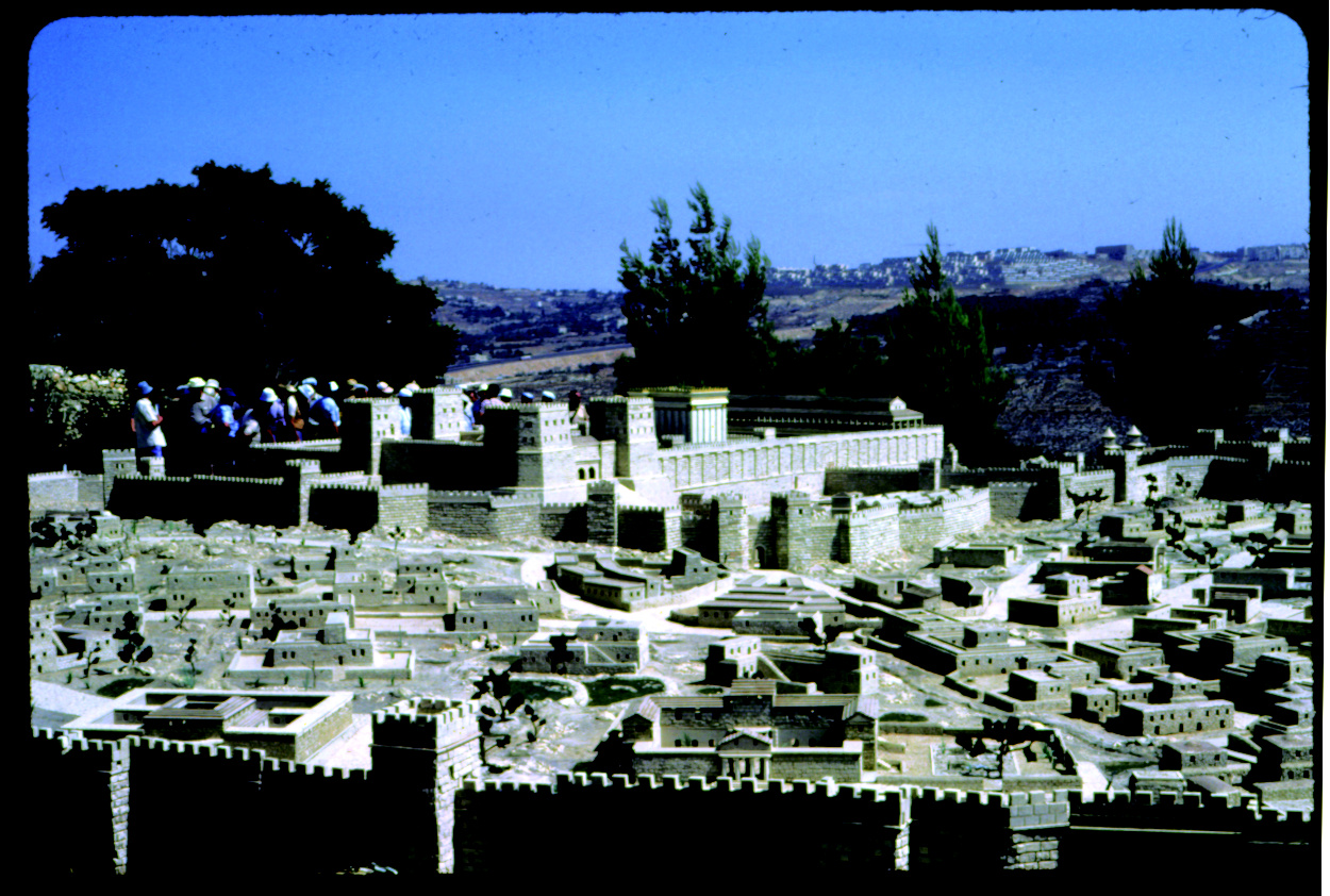 "This model shows the city of Jerusalem as it would have looked at the time of Jesus. The Roman Antonia Fortress, dominating the city in the center of the photograph, is the site of the praetorium where Pilate handed Jesus over to be crucified (John 18:28-19:16)."