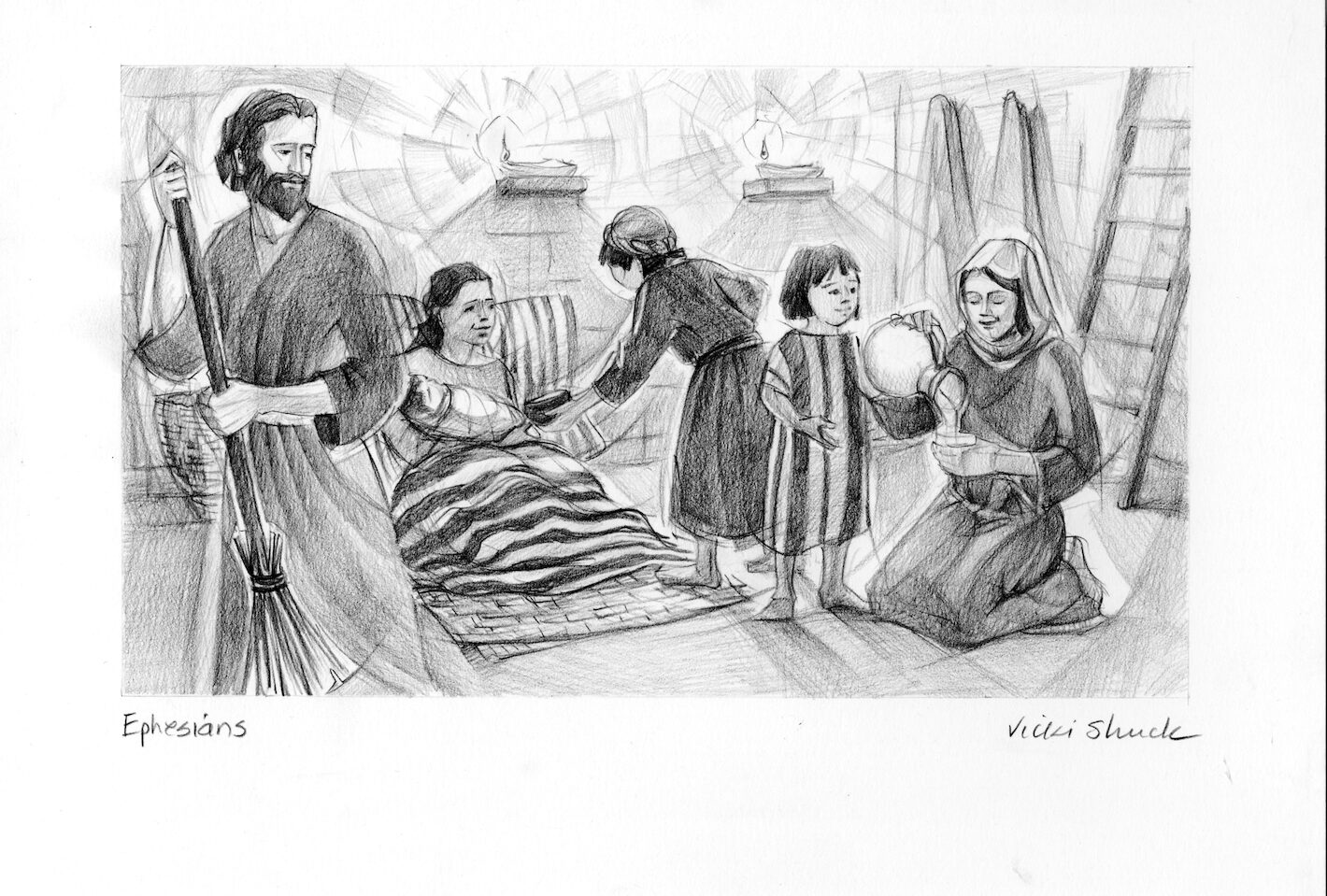 This is an illustration of Ephesian 5:21-33, which describes instructions for Christian households.