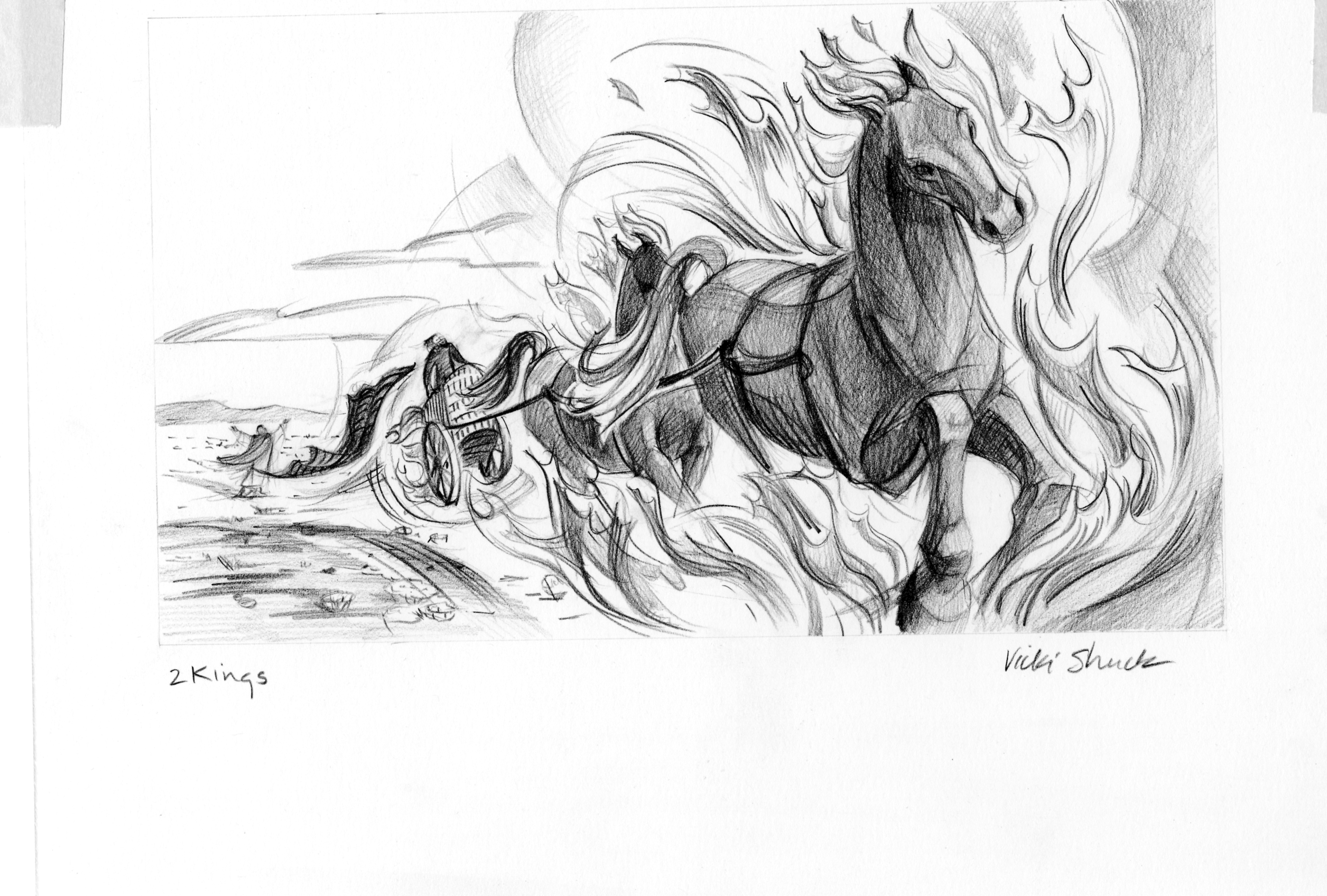 This image is an illustration of 2 Kings 2:11 - the Chariot of Fire