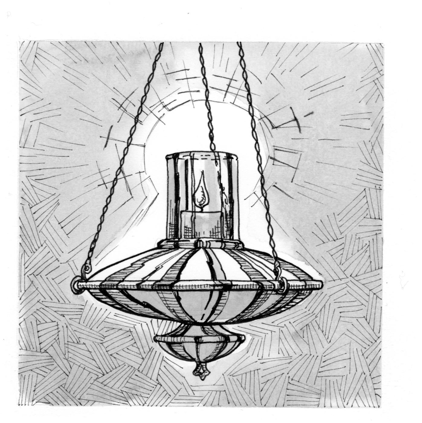This is an illustration of a sanctuary lamp, which burns as a sign of the presence of the Eucharist.