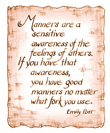 This is an illustration of a quotation by Emily Post about manners and sensitivity to others.