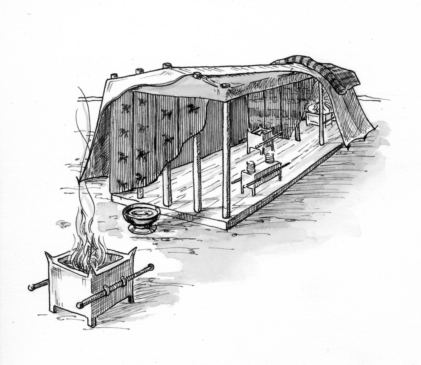 "An artist's rendition of the sanctuary furnishings within the meeting tent."
