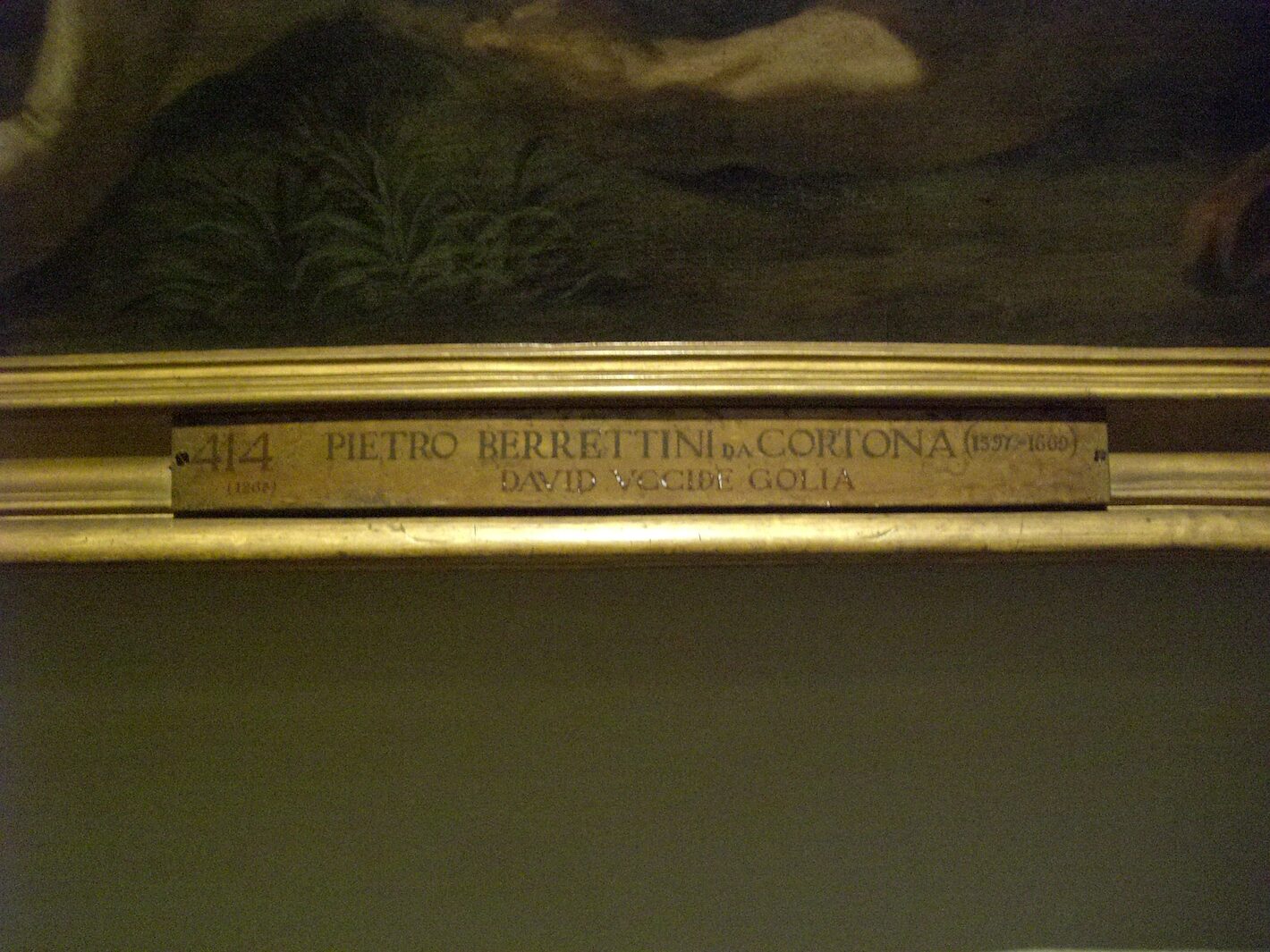 This is a sign for a painting by Pietro Berrettini da Cortona, "David Kills Goliath."