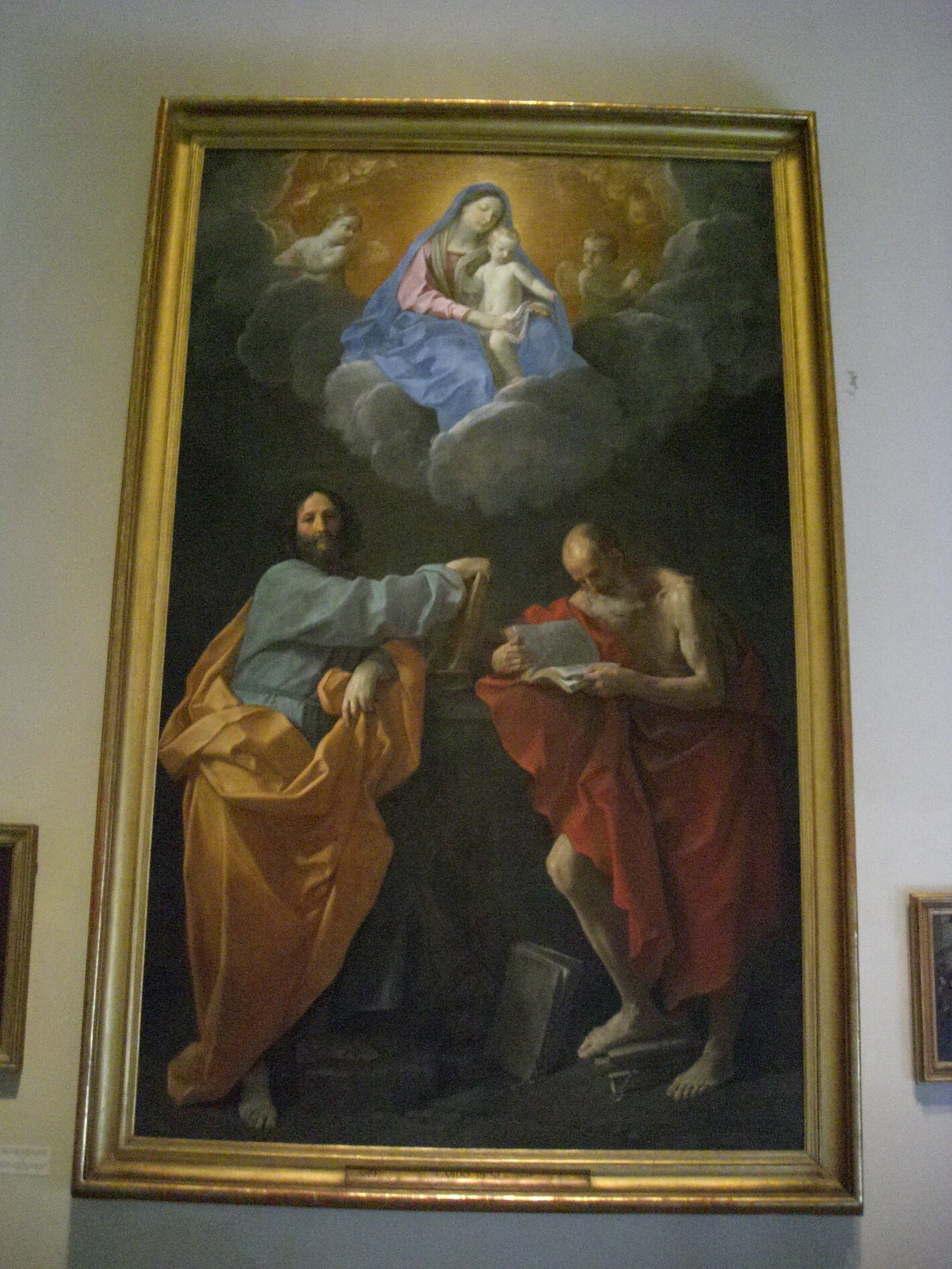 This is a famous painting by Guido Reni titled "The Virgin and Child Between Saints Thomas and Jerome."