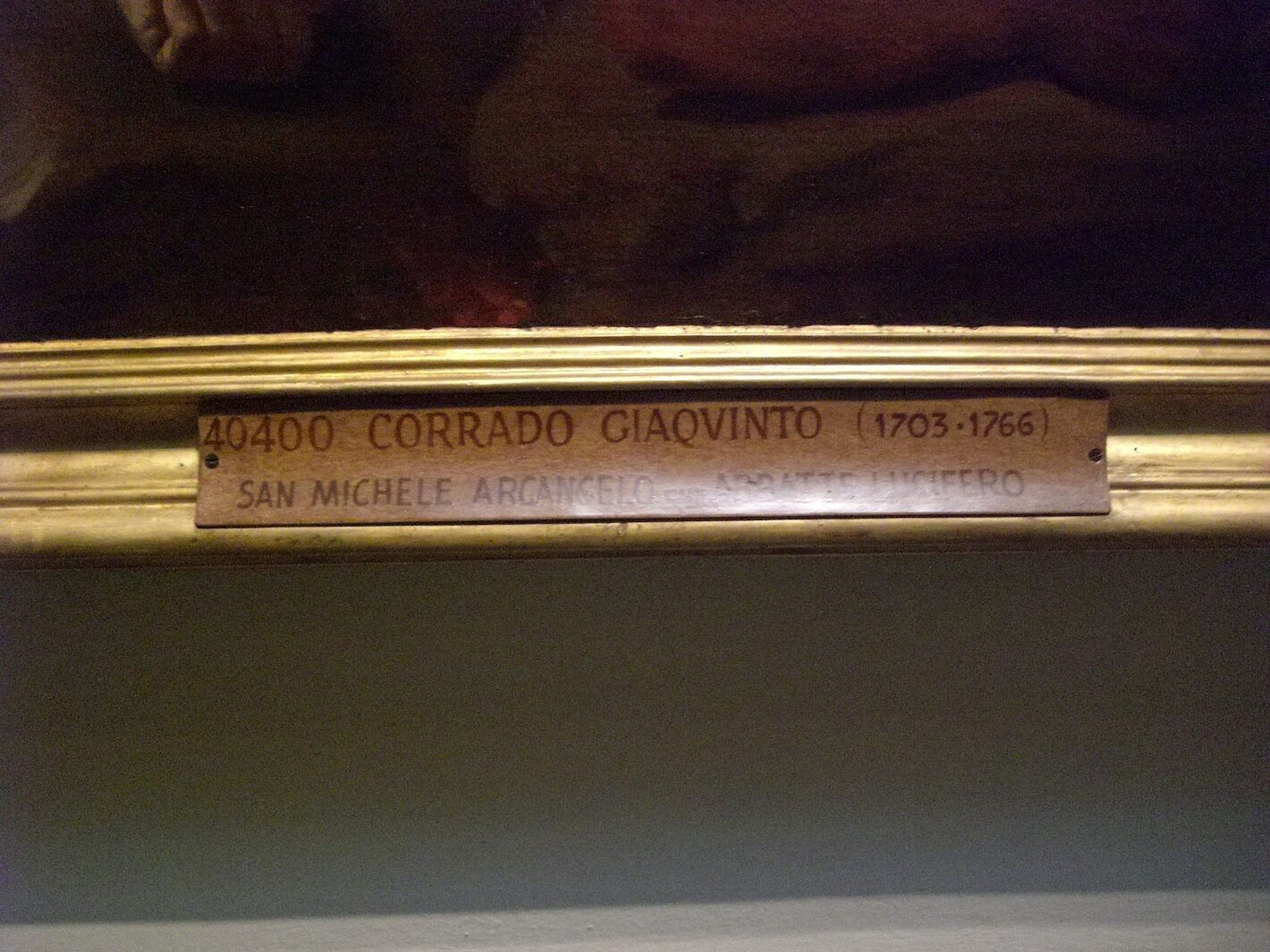 This is a sign for the painting by Corrado Giaquinto, "Saint Michael the Archangel defeats Satan."