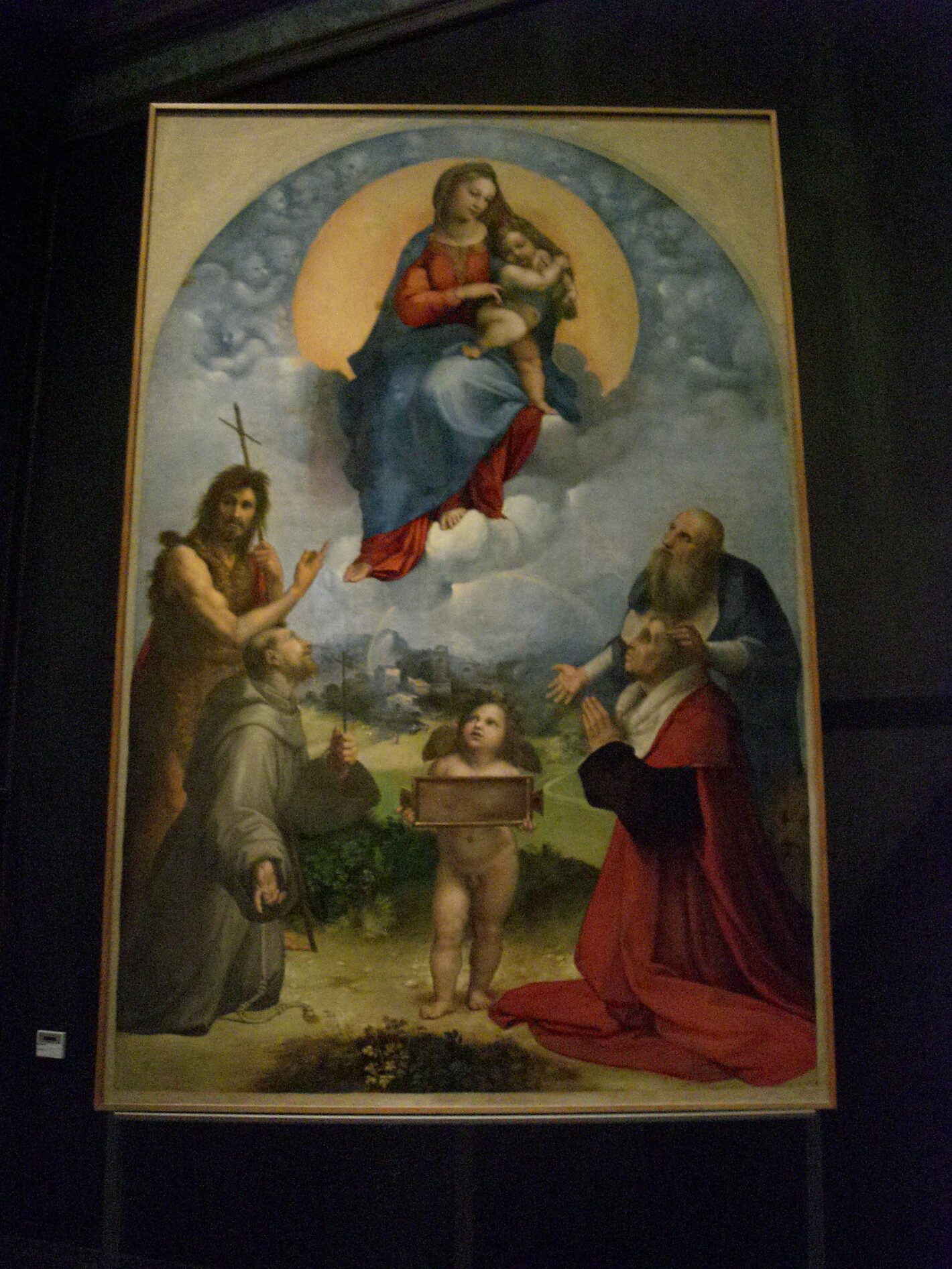 This is a photograph of the painting "The Madonna of Foligno" by Raphael.