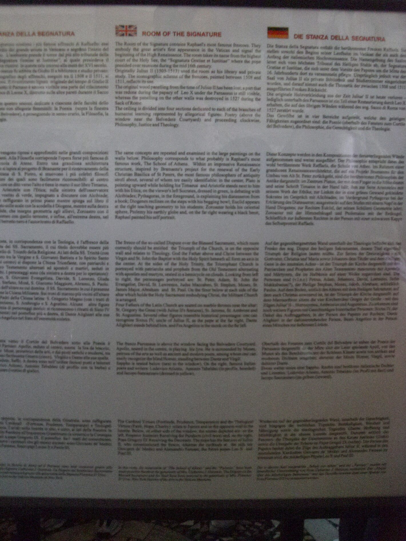 Vatican Museum Pinacoteca (Art Gallery) - sign: "Room of the Signature"