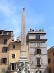 This is a photograph of the obelisk that stands in front of the Santa Maria del Popolo Catholic Church in Rome, Italy.