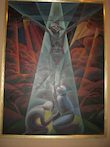 The Collection of Modern Religious Art at the Vatican Museum contains nearly 800 works of art. This is a painting of the Crucifixion. This is a painting by Graham Sutherland called "Study for Crucifixion." (1947).
