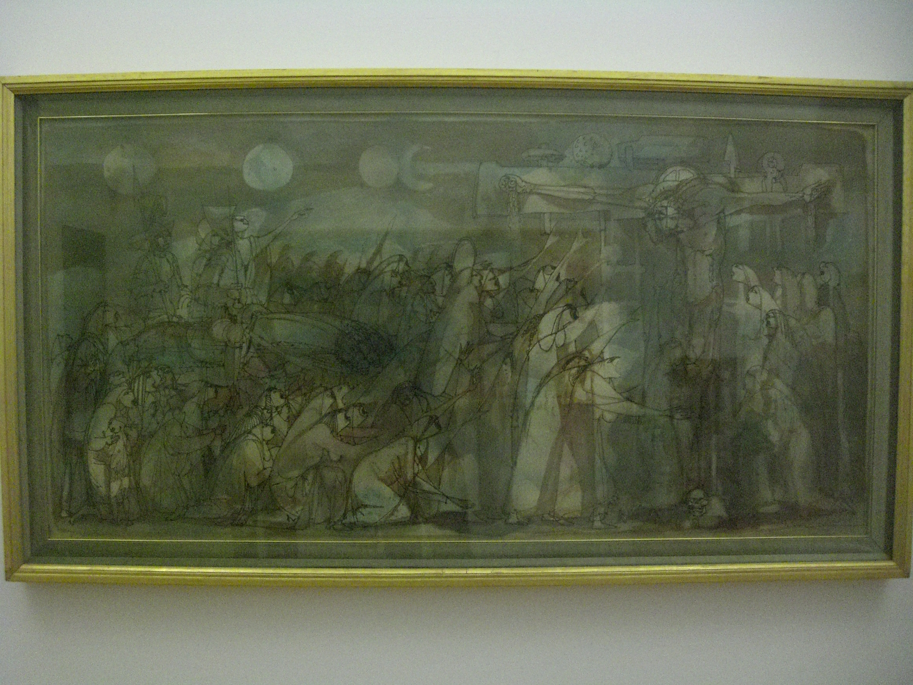 The Collection of Modern Religious Art at the Vatican Museum contains nearly 800 works of art. This is a painting by Mirko Basaldella called "Crocifissione, omaggio a Martin Luther King Jr", which is translated, "Crucifixion, a tribute to Martin Luther King Jr." (1968).