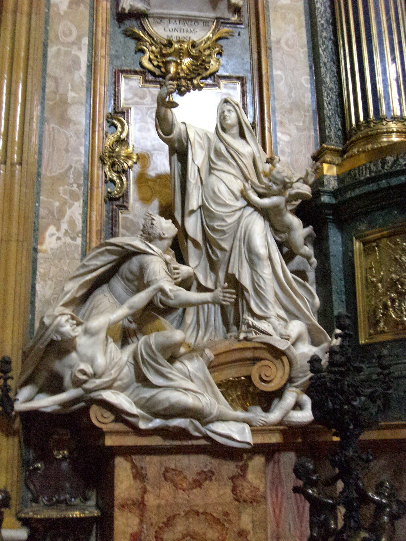 This is a photo inside the Church of the Gesu, which is the Mother Church of the Jesuit Order and is located in Rome, Italy.