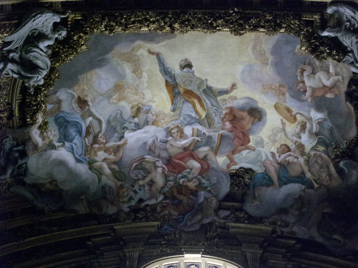 This is a photo inside the Church of the Gesu, which is the Mother Church of the Jesuit Order and is located in Rome, Italy.