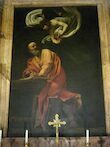 This is a famous work of art, 'The Martyrdom of St Matthew' (1599-1600) by Caravaggio. It is located in the Church of St Louis of the French, which is a minor basilica in Rome, Italy.