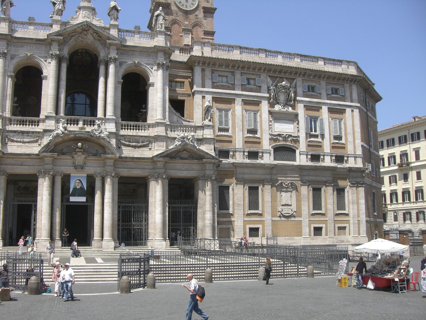 This is a photograph of the outside of the Basilica of Santa Maria Maggiore in Rome, Italy.