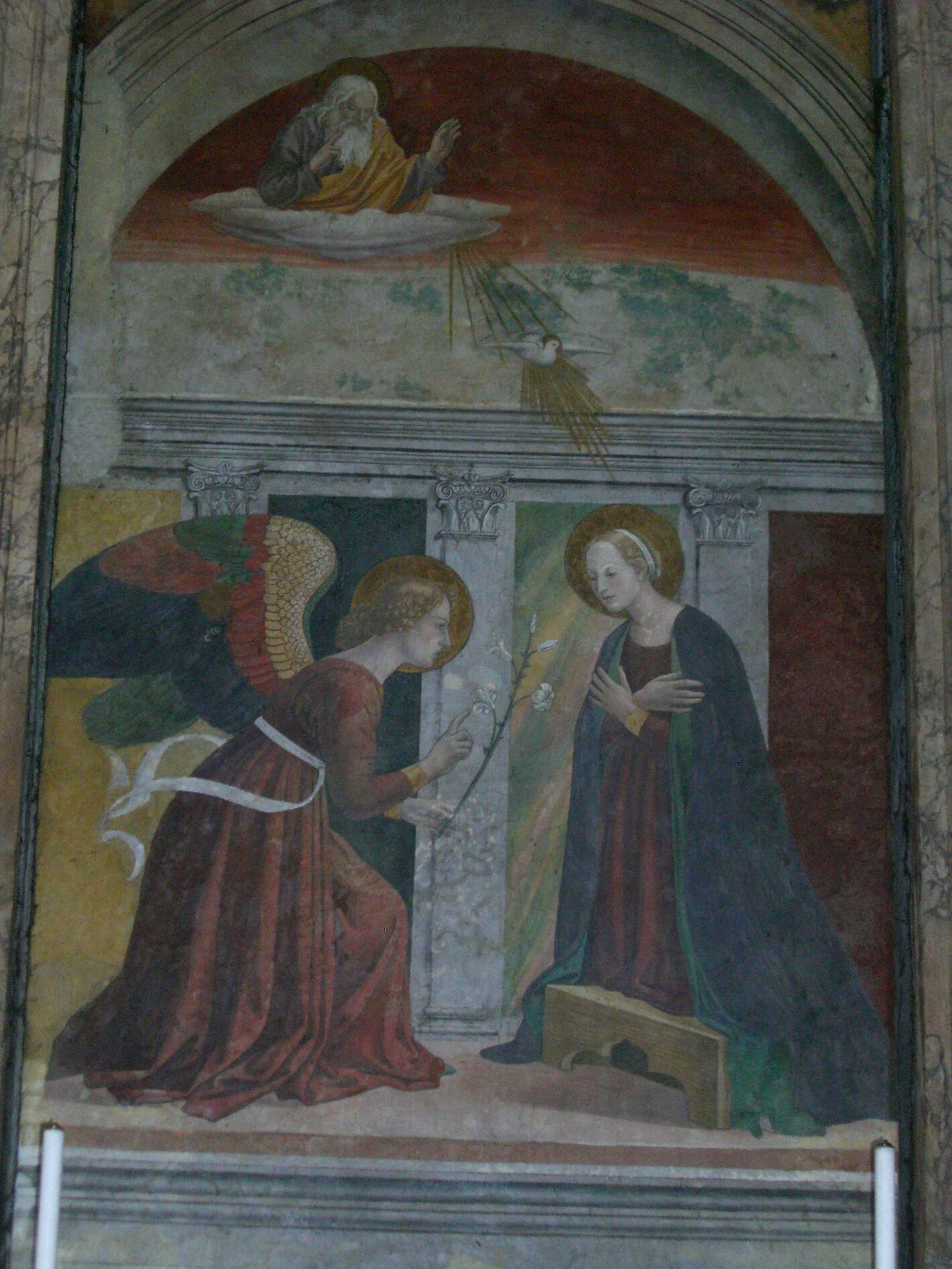 The pantheon was commissioned by Marcus Agrippa and built by Emperor Hadrian as a temple to all the gods in ancient Rome. It has been used as a Catholic Church since the 7th century. This is a depiction of The Visitation.