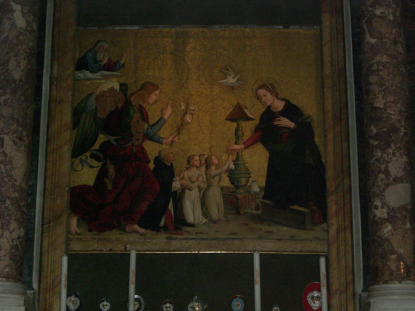 This basilica, located in Rome, was built on top of the ancient temple of a Greek goddess, and is named such. This is the considered the only Gothic-style church in Rome, and is famous for containing the tombs of St Catherine of Siena, Fra Angelico, and Galileo Galilei. This is a work of art inside the Chapel of the Annunciation.
