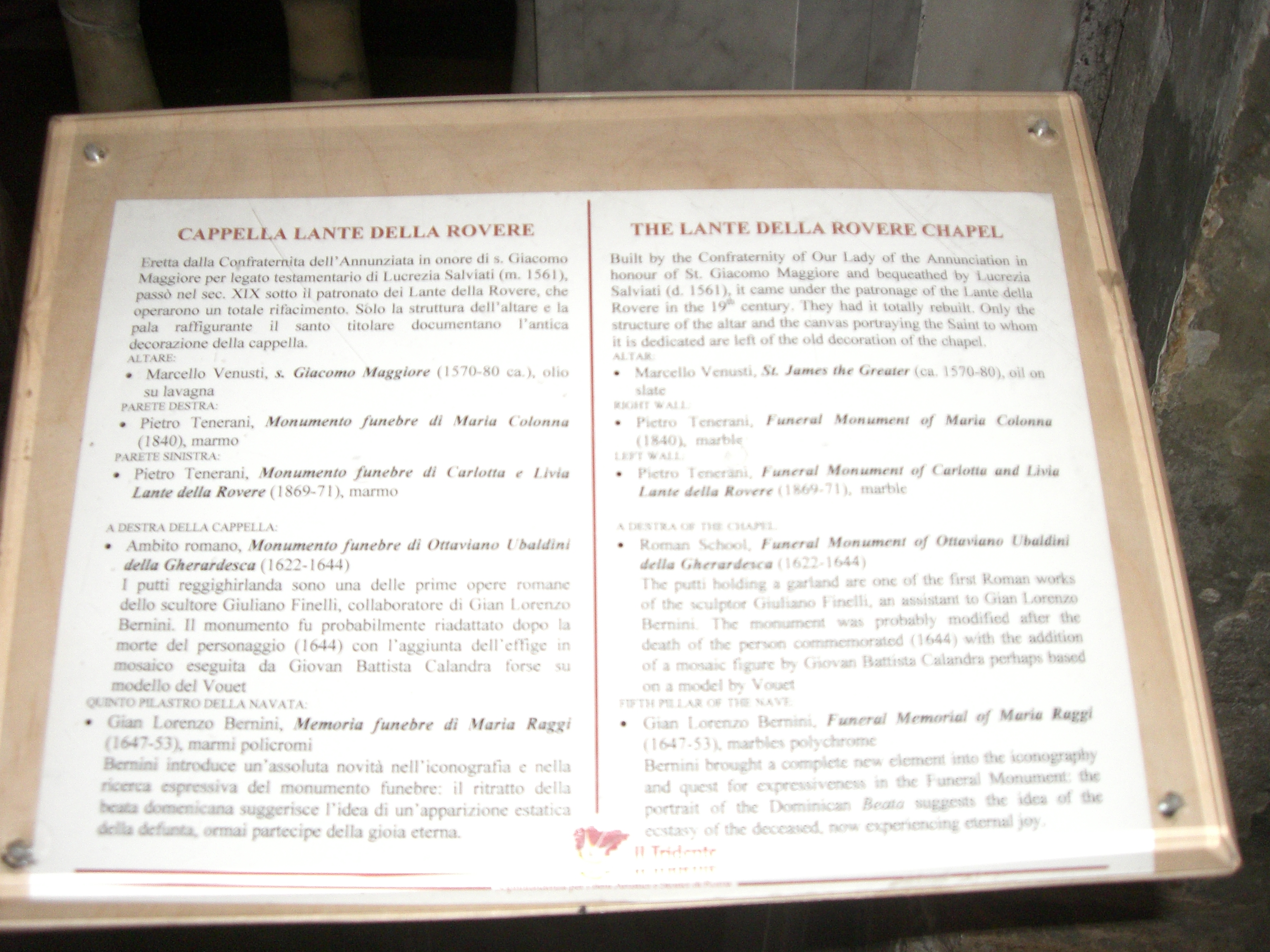 This basilica, located in Rome, was built on top of the ancient temple of a Greek goddess, and is named such. This is the considered the only Gothic-style church in Rome, and is famous for containing the tombs of St Catherine of Siena, Fra Angelico, and Galileo Galilei. This is an informational sign for the Lante della Rovere Chapel.