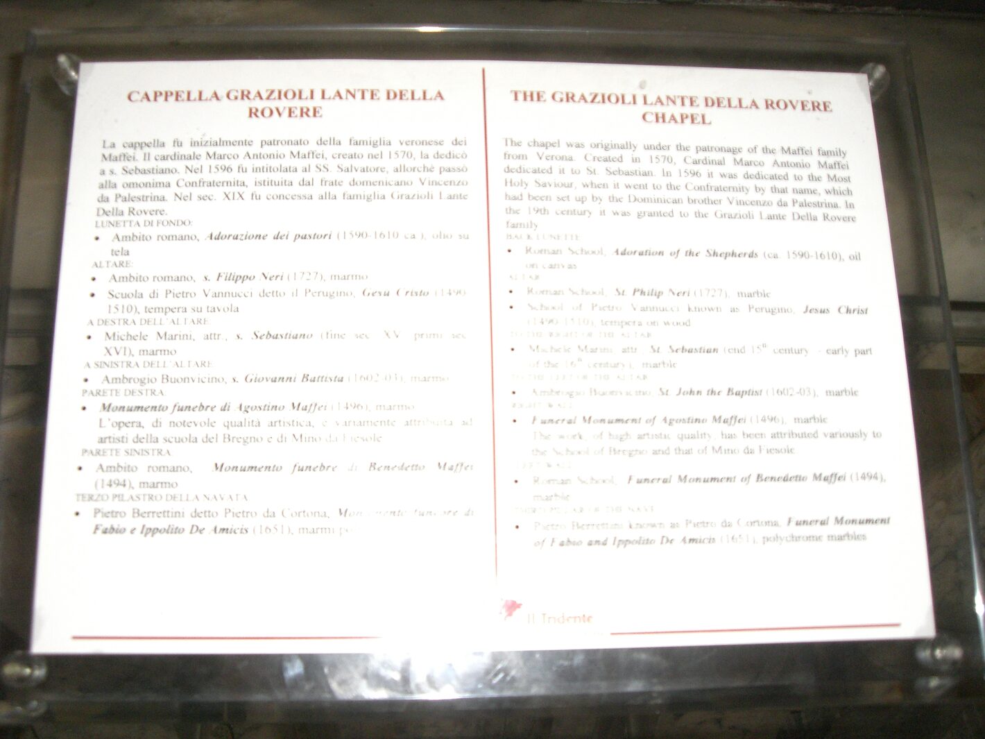 This basilica, located in Rome, was built on top of the ancient temple of a Greek goddess, and is named such. This is the considered the only Gothic-style church in Rome, and is famous for containing the tombs of St Catherine of Siena, Fra Angelico, and Galileo Galilei. This is an informational sign about the Grazioli Lante della Rovere Chapel.