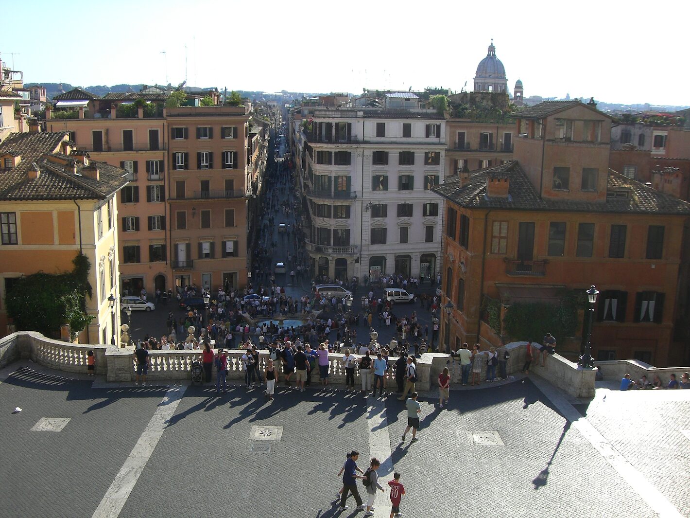 The Spanish Steps are located in the Piazza di Spagna in Rome, Italy and are famous for being the widest steps in all of Europe. This is the view from the top of the steps.