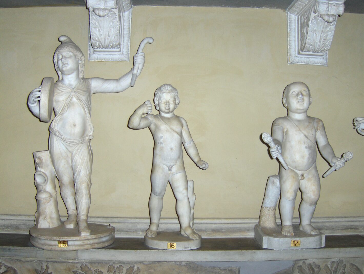 This is a photograph of three children statuettes in the Gallery of Statues at the Vatican Museum in Vatican City.