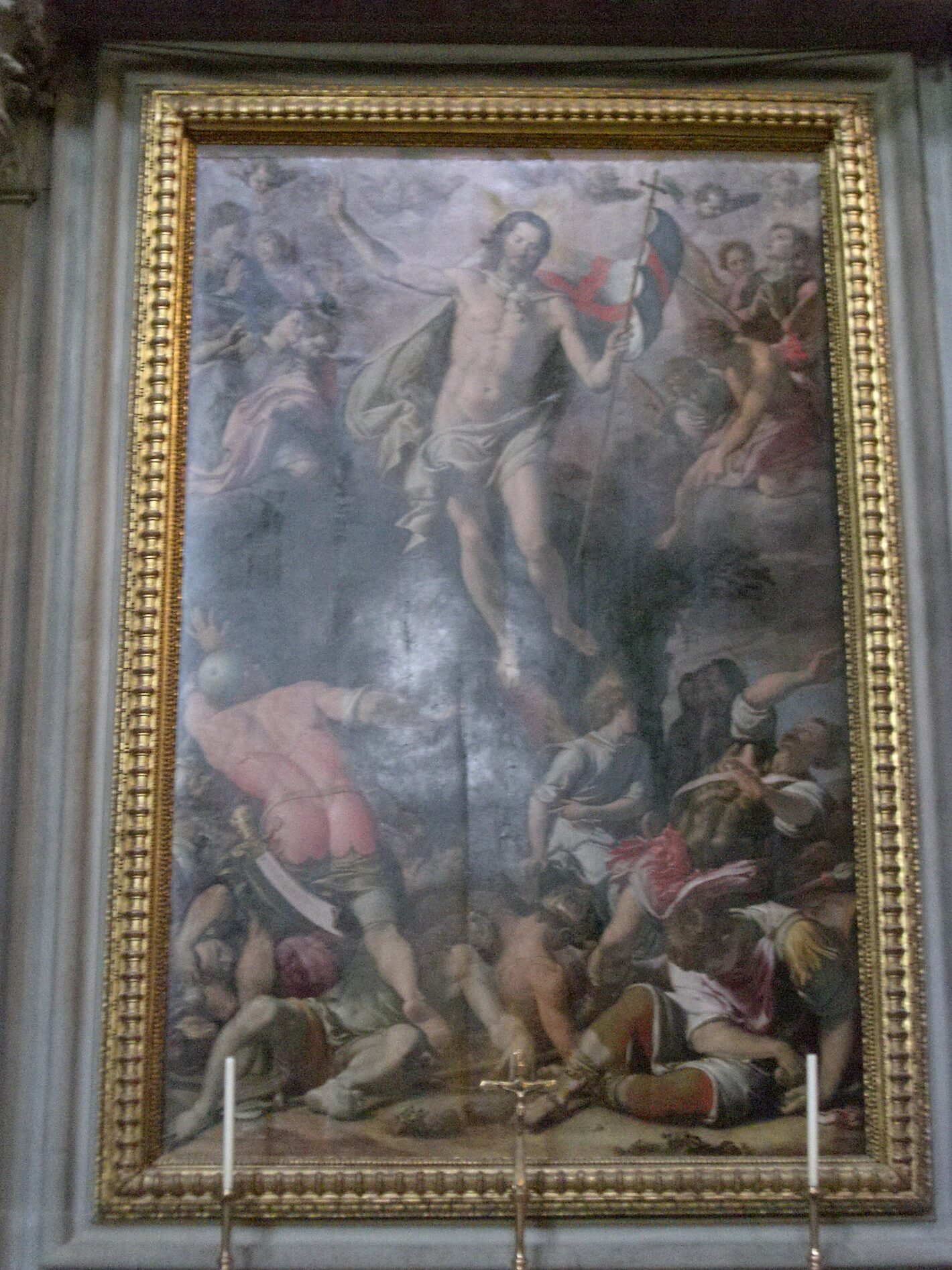 This is a photograph inside the Basilica of San Croce in Florence, Italy.