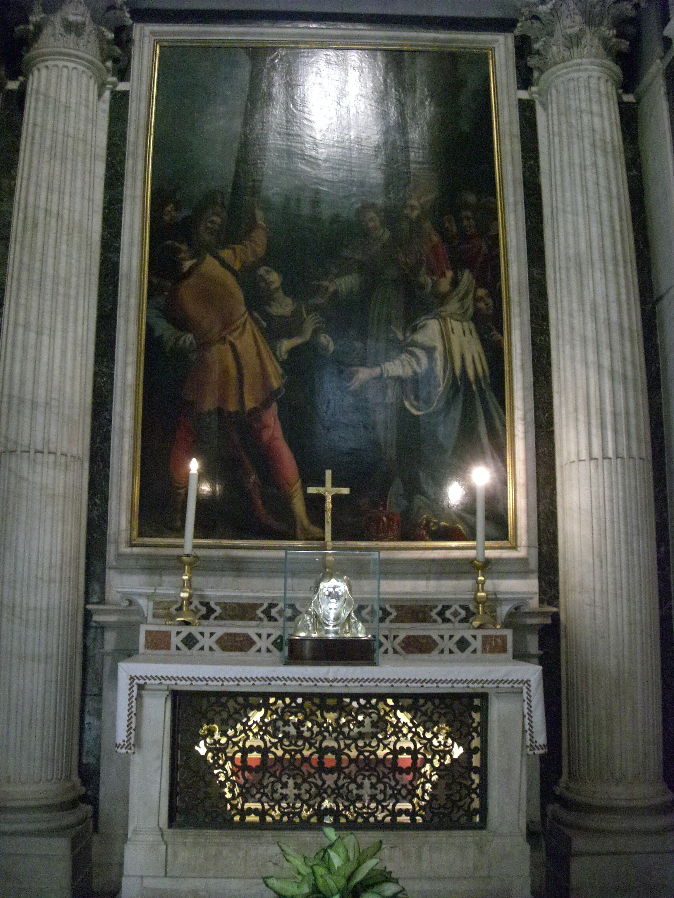 This is a photograph of a painting inside the Basilica of San Croce in Florence, Italy.