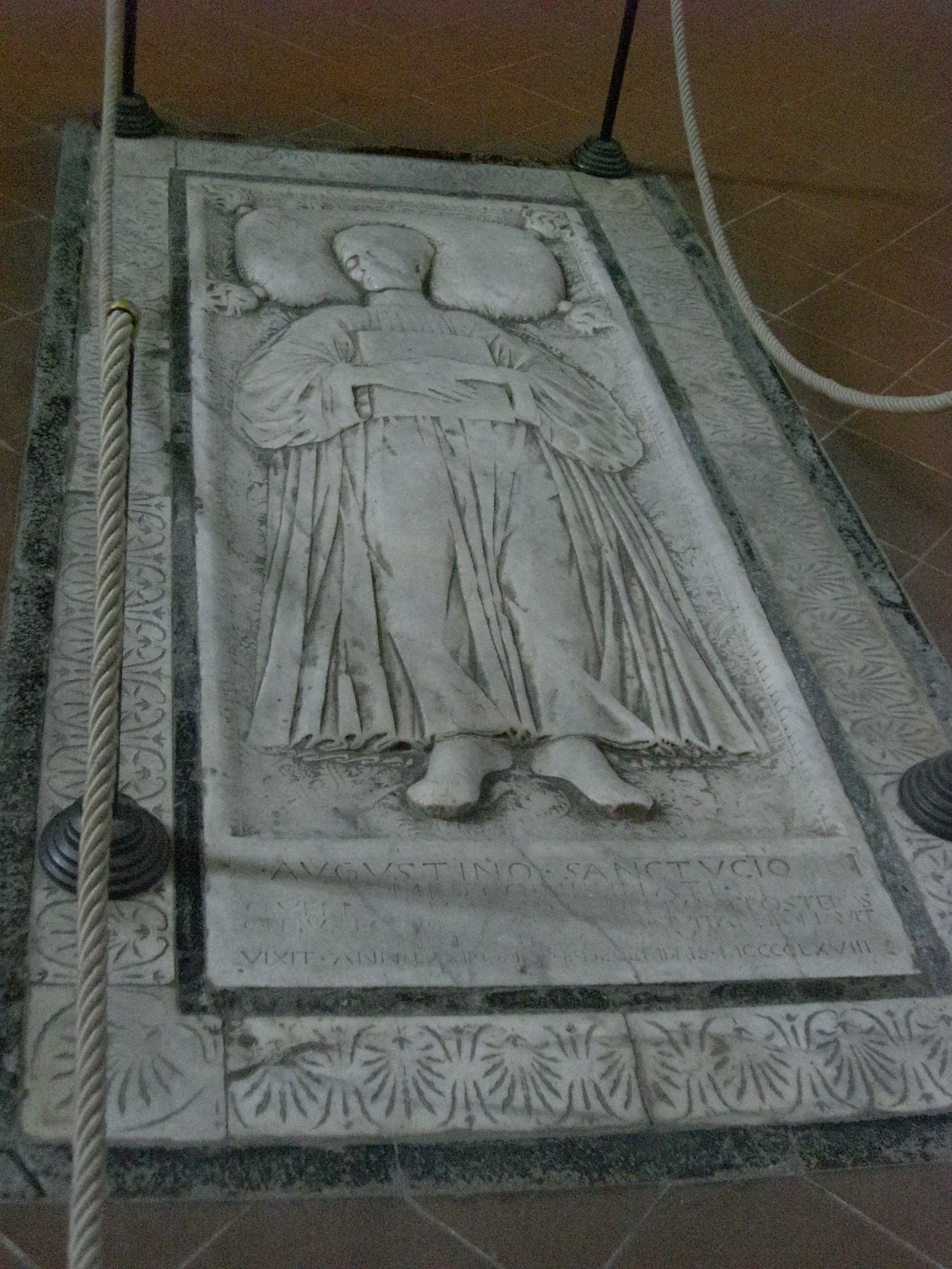 This is an image of one of many sepulchral plates in the floor of the Basilica of San Croce in Florence, Italy.