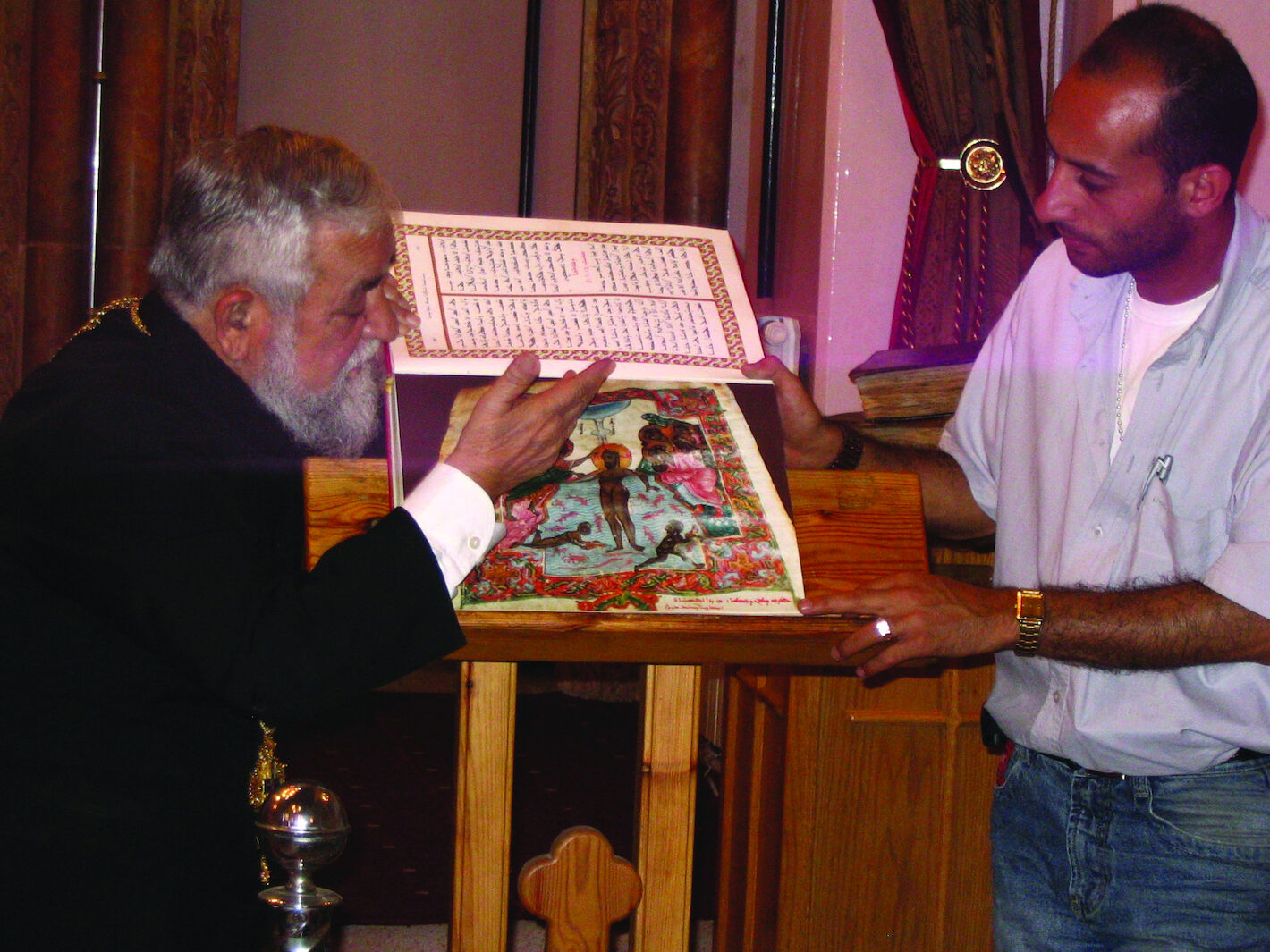 These two men are showing the Gospel from their Eastern Orthodox Church in Bethlehem.