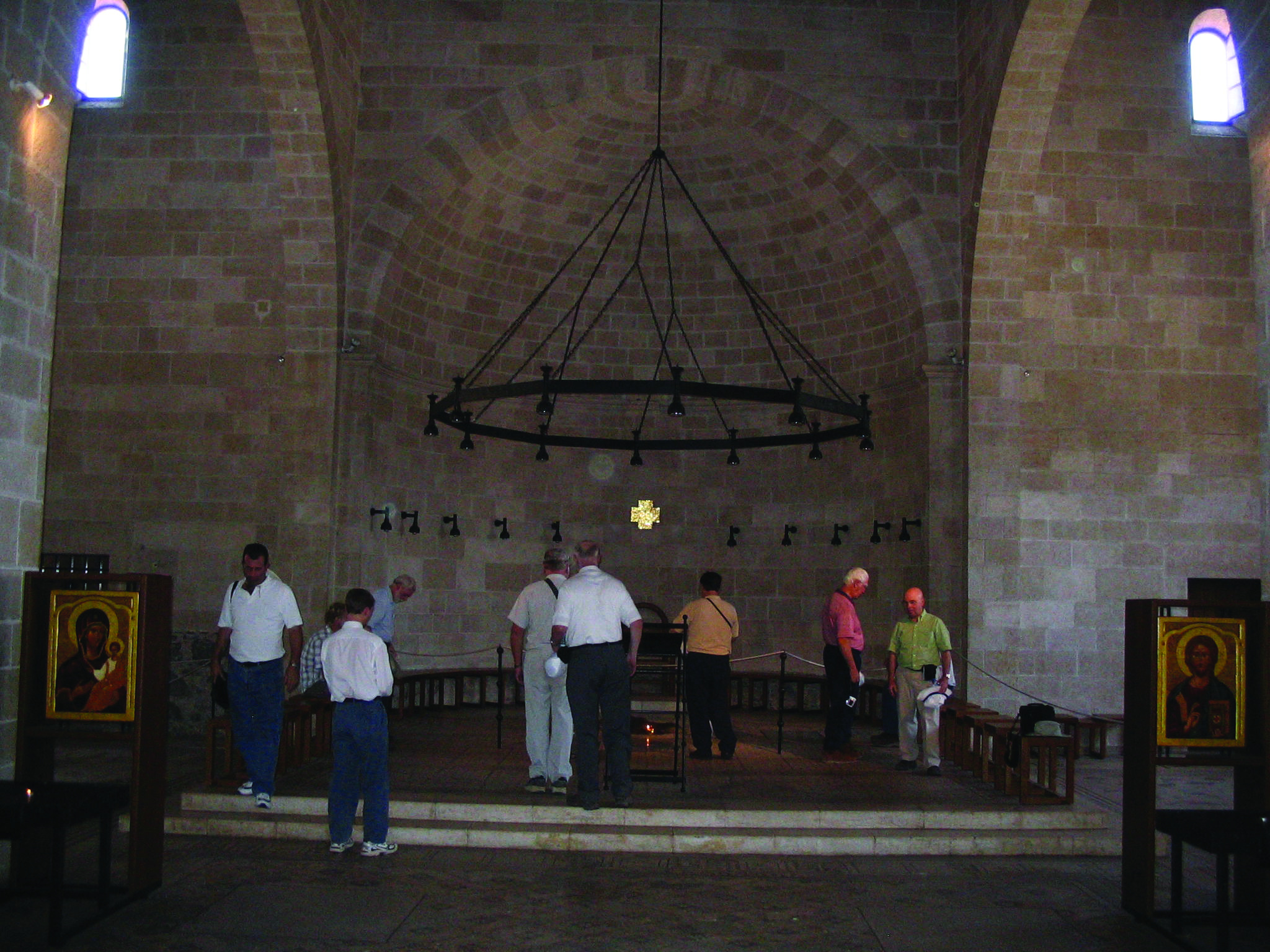 Interior of the Chruch of the Multiplication in Tabgha, Israel. The site of the rock where Jesus stood when he multiplied and blessed the loaves and fish before feeding the multitudes.